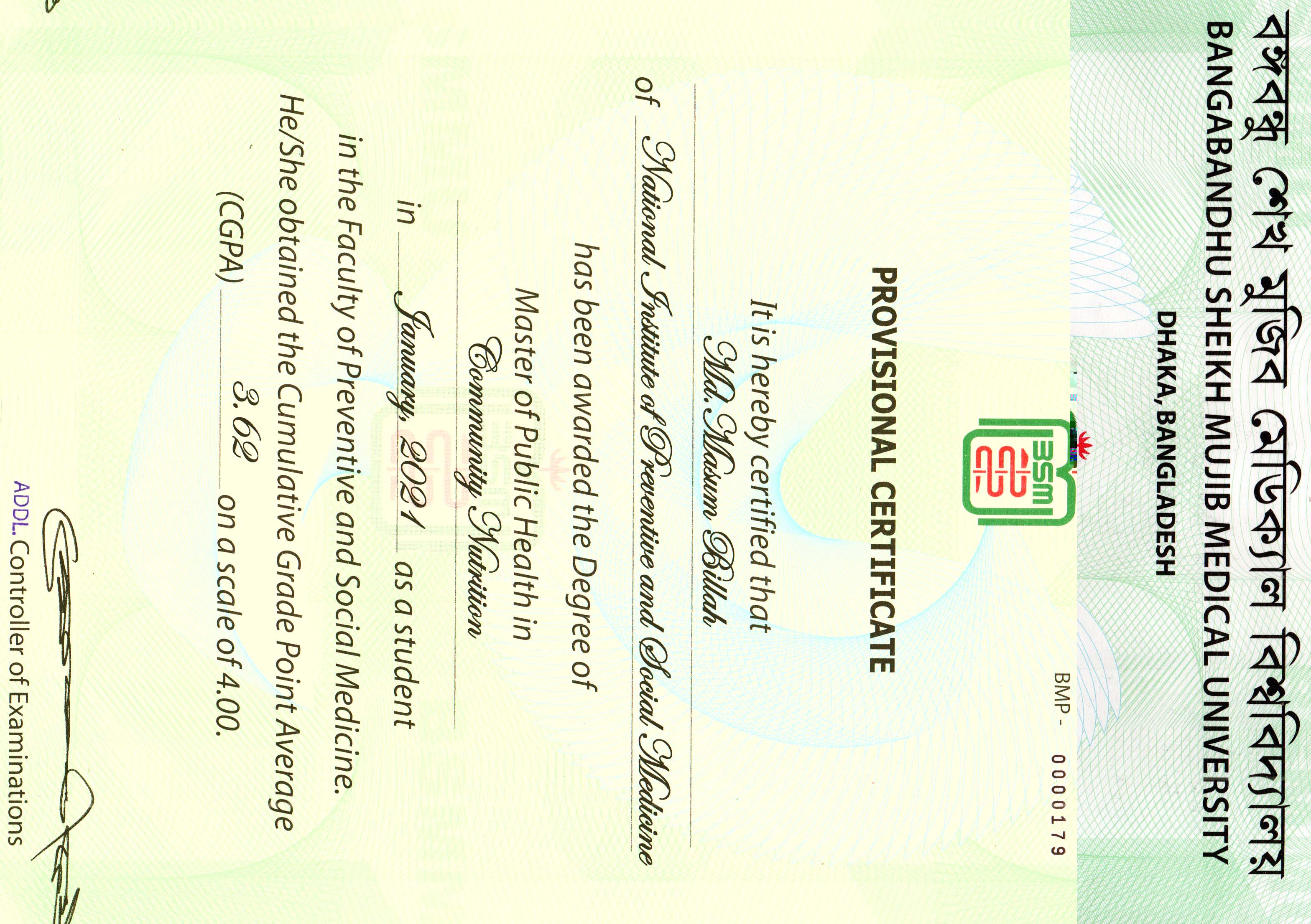 BUMS (DU) MPH-Nutrition (BSMMU) | DGDA Reg. No.: U-397