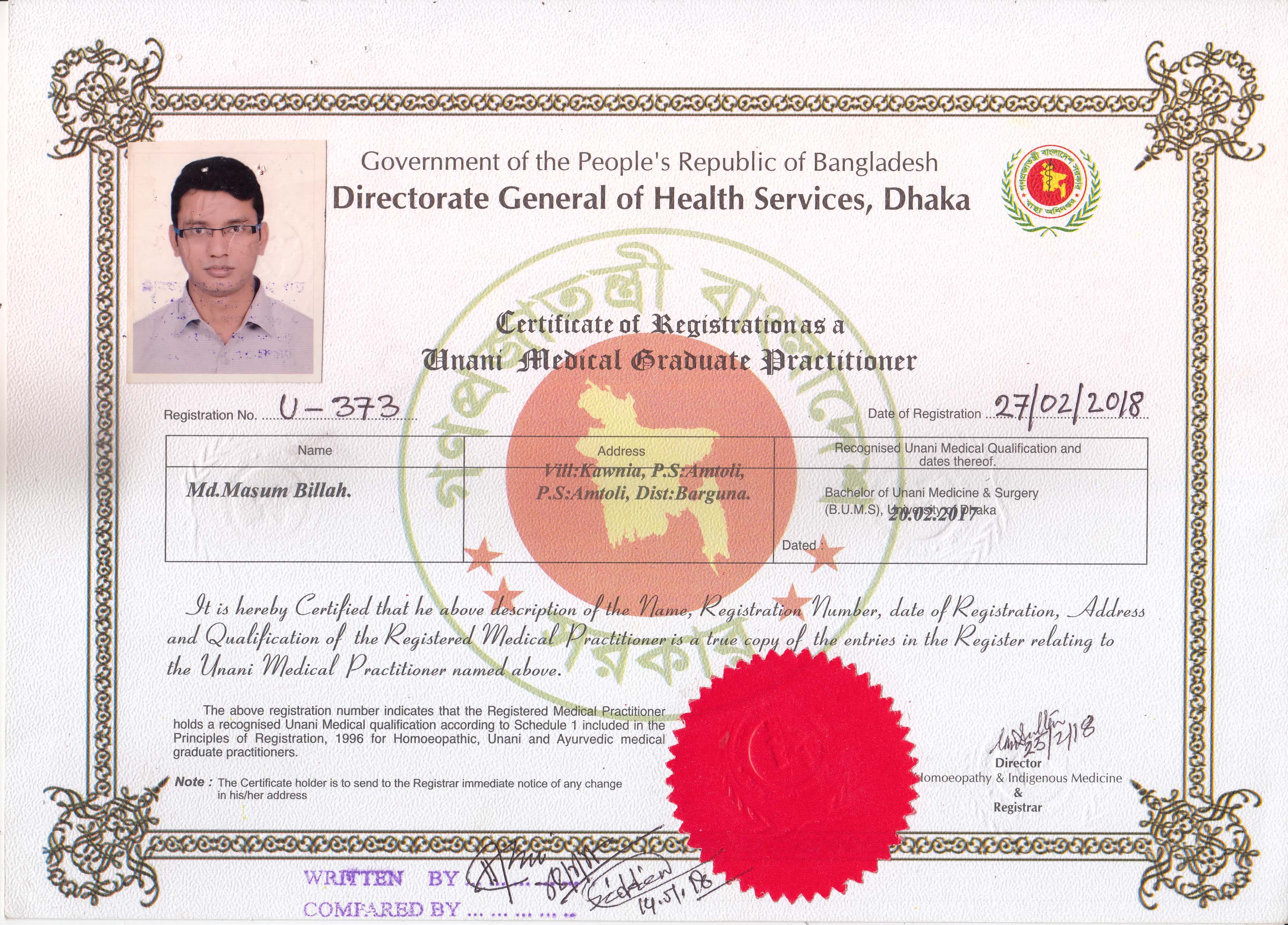 Dr. Masum Billah is a dedicated Unani doctor specializing in Nutrition, Natural Medicine, and Public Health. He earned his Bachelor of Unani Medicine and Surgery (BUMS) degree from the Government Unani and Ayurvedic Medical College. To further enhance his expertise, he completed a Master of Public Health (MPH) with a major in Nutrition from BSMMU.